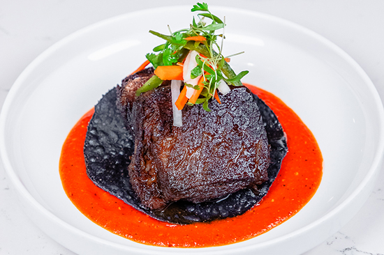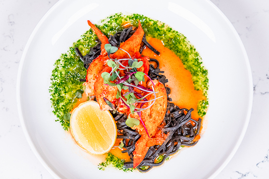 squid ink pasta, marinated tomatoes, dashi, smoked butter, aleppo
