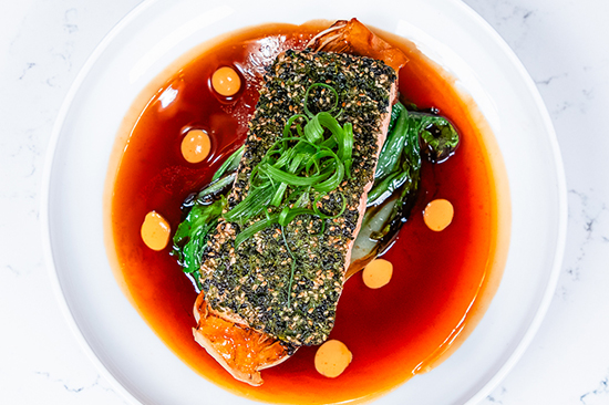 furikake crusted, ponzu glaze, seared bok choy, miso butter
